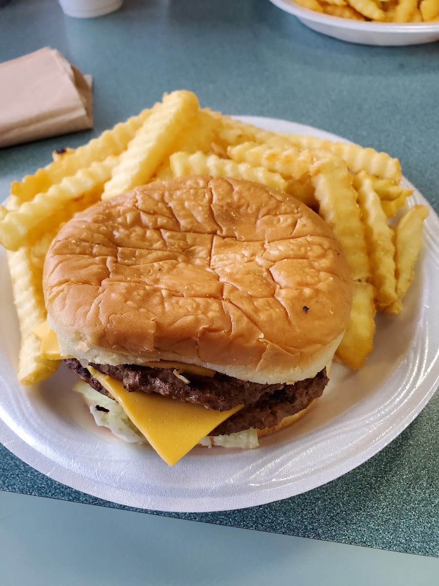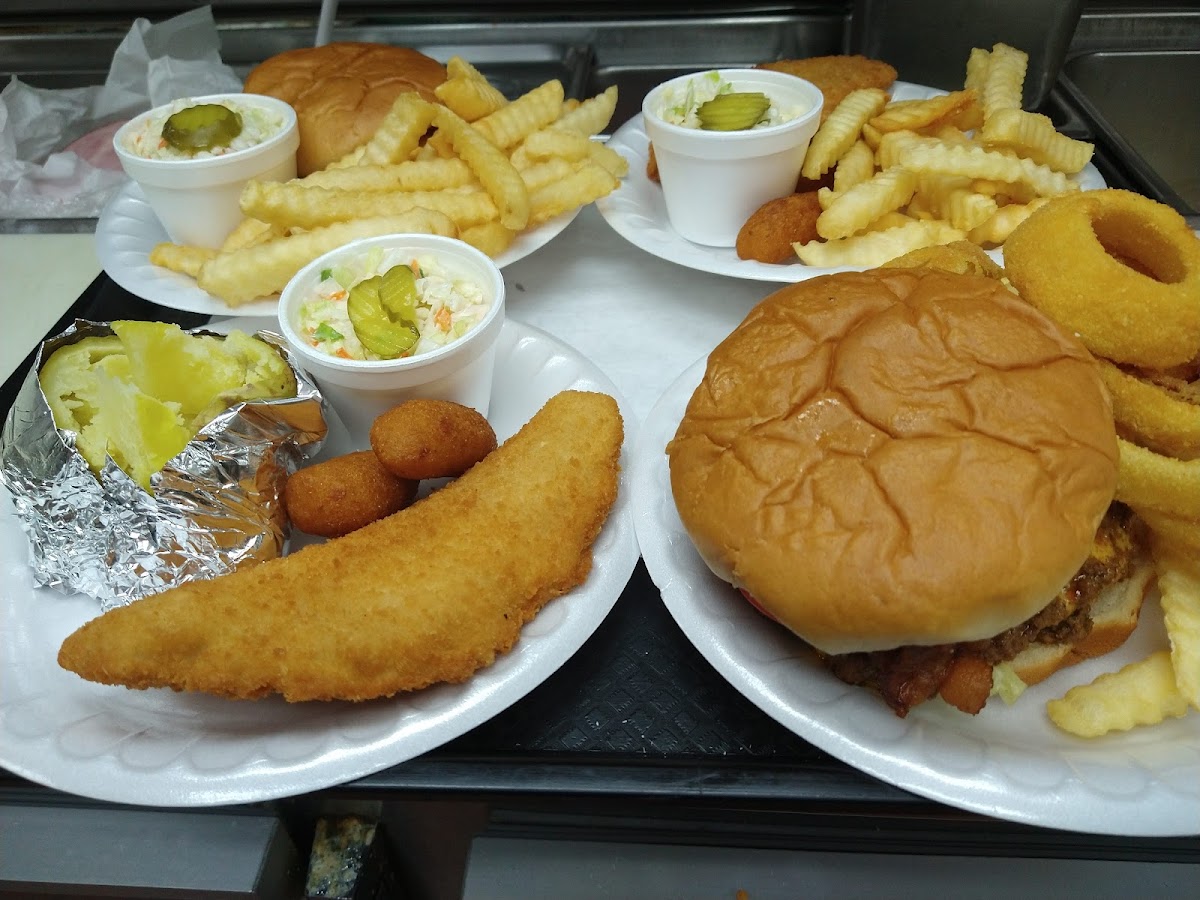 I love their onion rings cooked crispy. Their burgers and chicken fried steak are great. Yum, the okra, slaw.