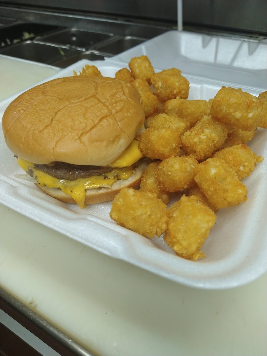 For those with a big appetite, the Double Cheeseburger with Tots is sure to fill you up. Two juicy beef patties stacked high with cheese, along with crispy tots on the side, make this a satisfying and hearty meal.